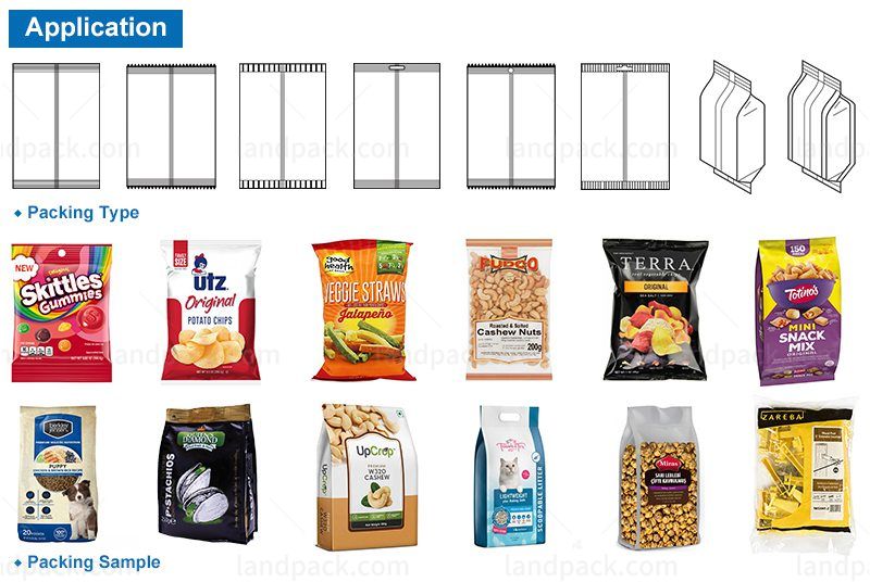 Automatic 5-15kg Big Pouch Vertical Weighing Packaging Machine, it is suitable for weighing packaging of 5-15 kg granular products, such as candy, frozen food, dog food, nuts, dry fruit, cat litter, cat food, fish food and other granular pet food packaging.