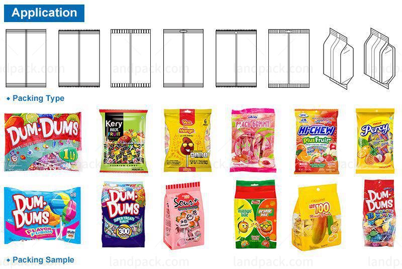 Suitable for packing all kinds of grain material, sheet material, strip material and abnormity material which such as candy, sunflower seeds, peanut, nuts, beans, potato chips, popcorn, almond, dry fruit, vegetable salad (shreded or sllices vegetables, like iceberg lettuce, cabbage, romain, spring onion and leek ect.), frozen food, jelly, biscuit, chocolate, filbert, corn, pet food, dilatant foodstuff, hardware and plastic can be weighed by the ration.