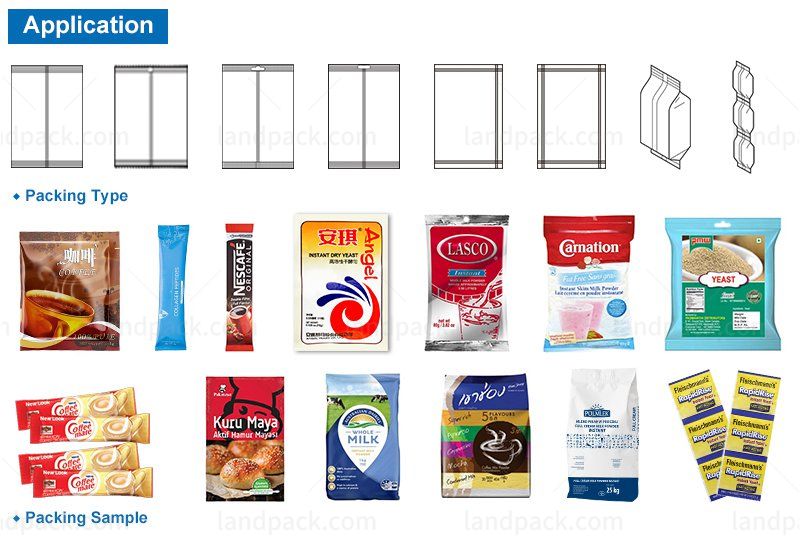Automatic powder form fill seal machine, Suitable for packing the fine powder material. Such as coffee powder, spice powder, milk powder, flour, fruits powder, seasoning, chemical medical powder, etc. It integrates metering, bagging, packing, sealing, date printing.