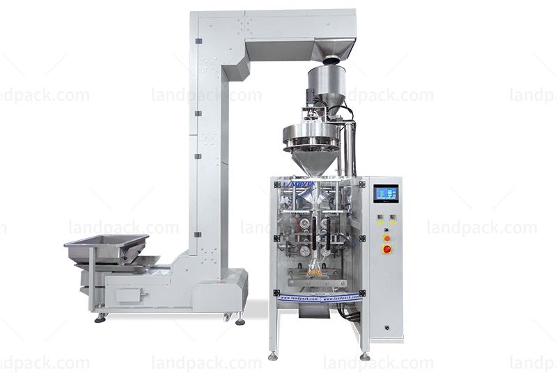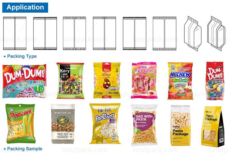 Automatic vffs packaging machine with volumetric cup. it is apply to pack bulk grain, slice, short bar material products such as puffy food, popcorn, shrimp chip, salt, sugar, rice, sunflower seed, peanut, beans, nuts, pistachio, peas, instant oatmeal / cereal oats, etc.