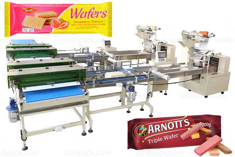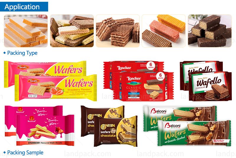This machine is suitable for the fully automatic packaging of a variety of products, including biscuits, wafers, egg rolls, cookies, cakes, pastries, and other similar baked goods. It can handle products of different shapes and sizes, providing flexible and efficient packaging solutions for the food industry.