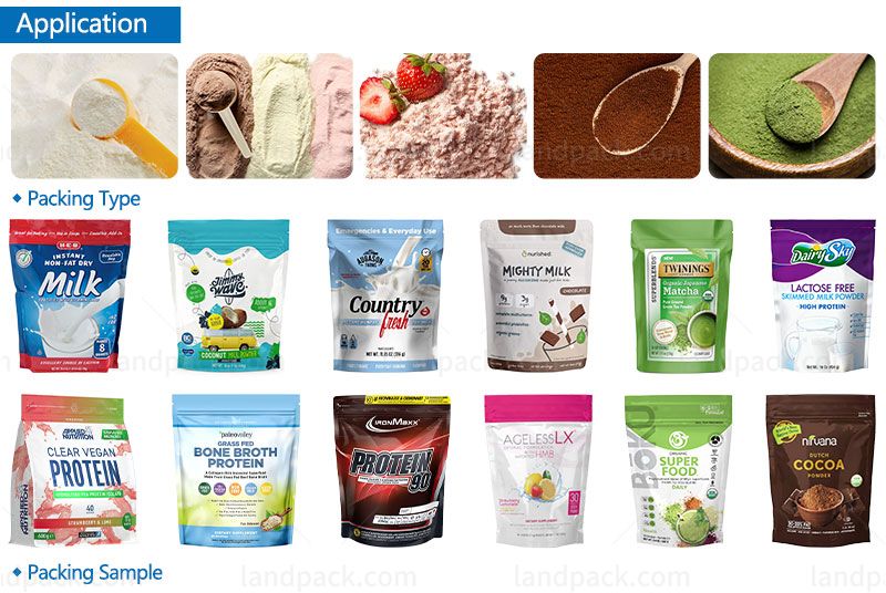 Suitable for packing powder in zipper pouch such as milk powder, spice powder, seasoning powder, protein powder, coffee powder, grains powder, nutritional powder, etc.