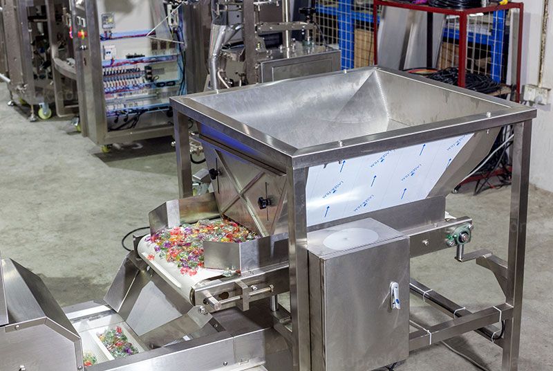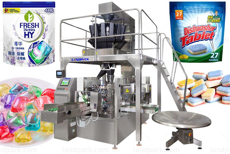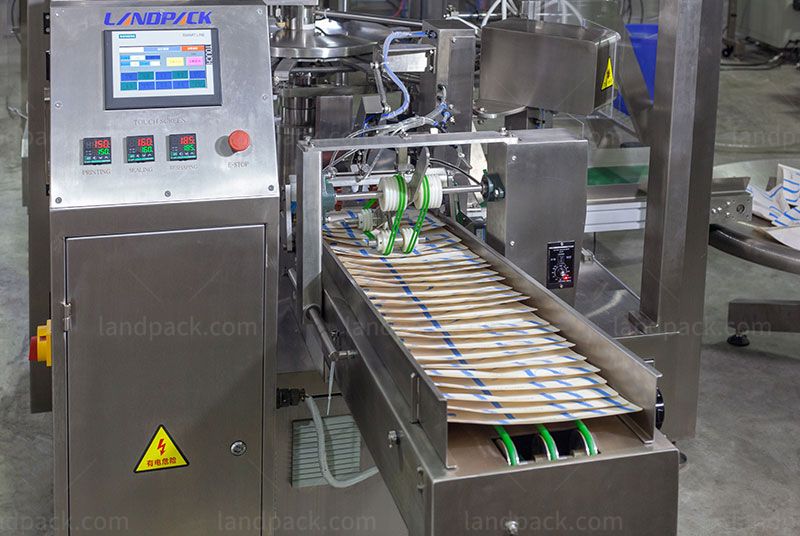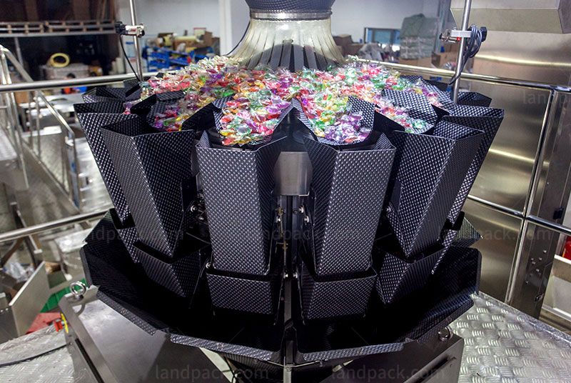 Landpack Zipper Pouch Packing Machine, It is suitable for candy, hard nut, raisin, peanut, melon seedschips, chocolate, biscuit and other big grains or irregular shapeproducts auto weighing packing.