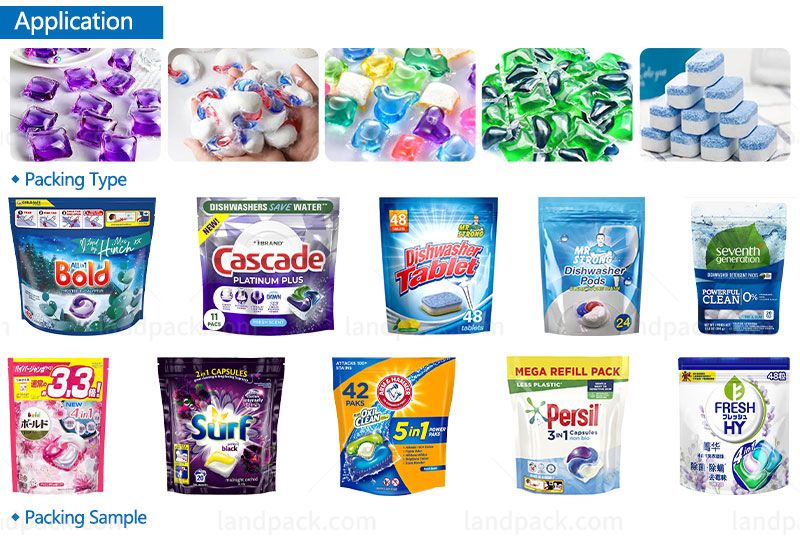 It can adopt all type of heat sealable performed side seal bags, block bottom, bags, zip-lock recloseable bags, stand-up pouch with or without spout, paper bags, flat pouch, stand-up pouch, zipper pouch, spout pouch, gusset pouch, paper pouch, aluminium foil pouch, etc.